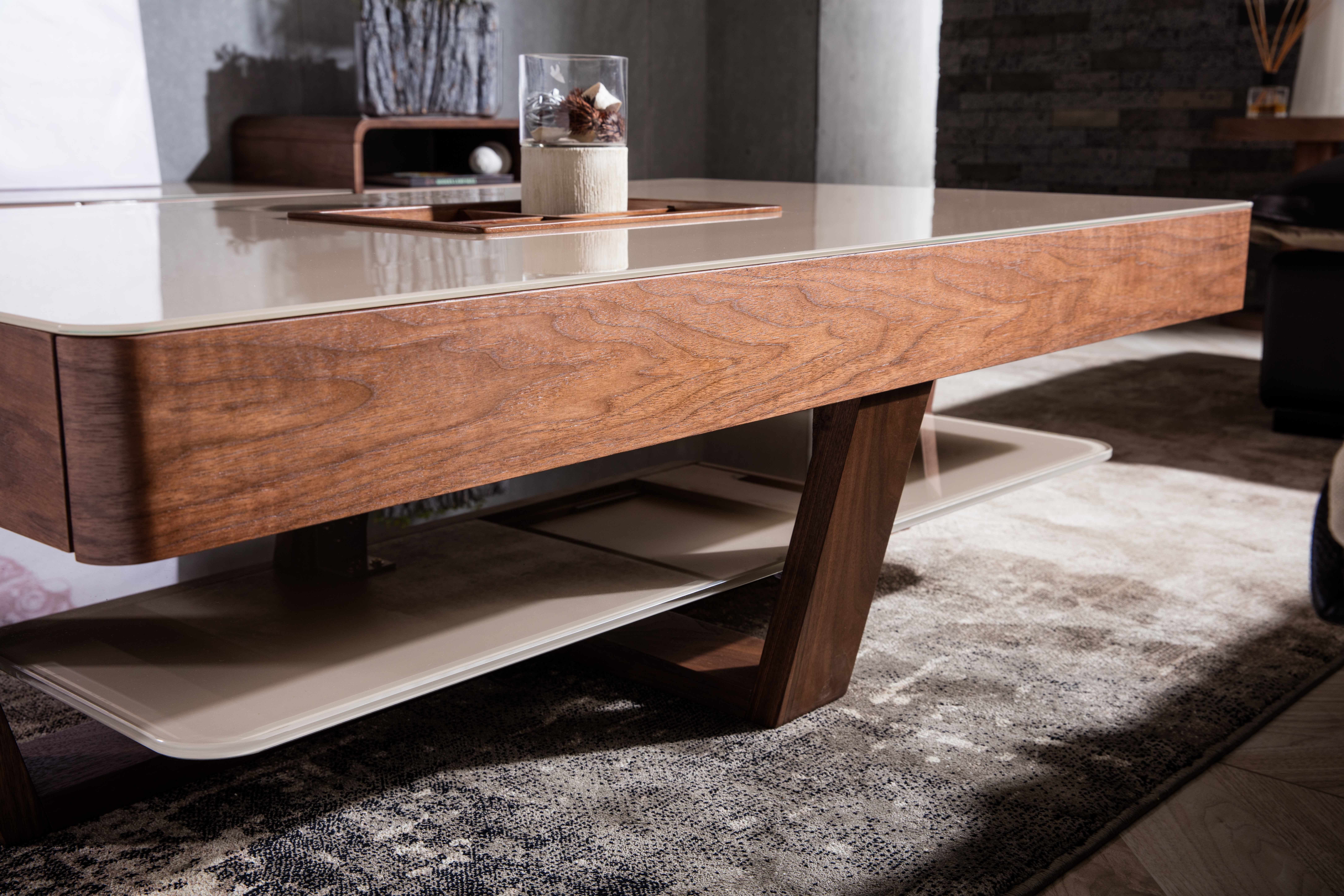 茶几,卡其色,钢化玻璃+密度板